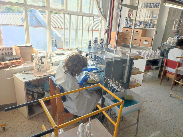 Se puede visitar el interior de la fábrica y ver a sus trabajadores como cuidan cada pieza hasta el más mínimo detalle, además de pintarlas a mano.